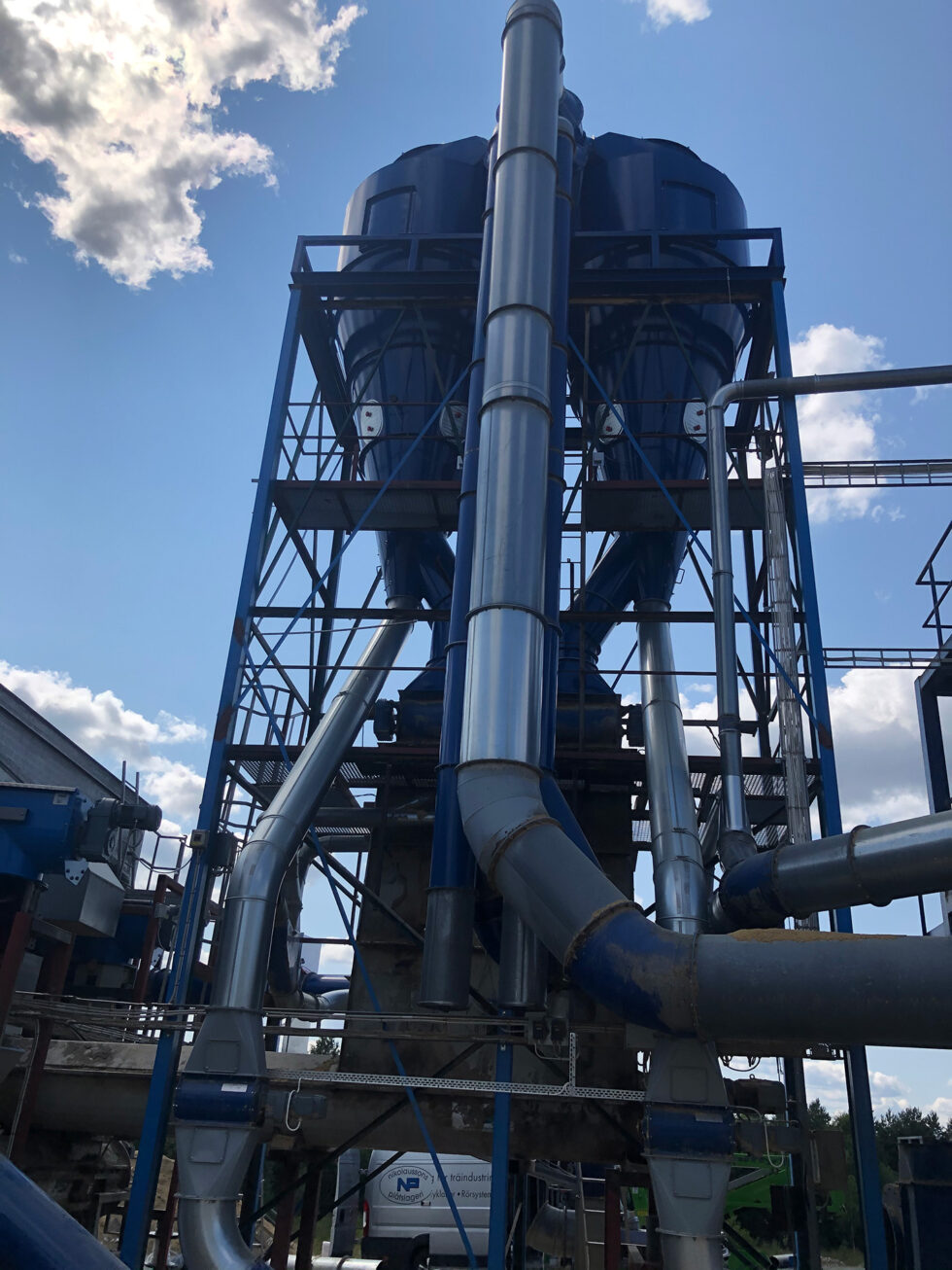 Hok separatorcyklon Det ser nästan ut som vanliga cykloner, men de här är byggda för att föravskilja finare partiklar från kutterspån till en stallströlinje! Finare material föravskiljs och matar ut i ett separat utlopp i botten. Några jobb inom spånhantering Sjöbergs – stoftavskiljningapril 21, 2023 Klevshultapril 20, 2023 Nydalaapril 20, 2023 Skaraborgapril 20, 2023 Hok separatorcyklonapril 20, 2023 Nössemarkapril 19, 2023 Willa Nordicapril 19, 2023